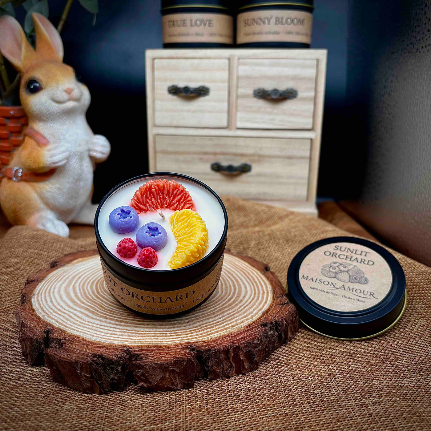 Enciende Sunlit Orchard y deja que su fragancia dulce y soleada ilumine tu día – un pedacito de verano en cada llama. 🍇🍑
